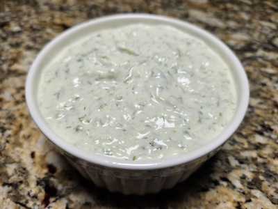 This is a quick tzatziki sauce that provides a nice, “crisp” taste to things. I mainly use it when making gyro meat, but also sometimes as a salad dressing. I like a bit of “bite” to the sauce, but if that is not your style, the lemon juice and vinegar may be omitted. The sauce is a little chunky as well. For something smoother, you may perhaps finely chop the grated cucumber after squeezing the water out of it, or run the sauce through a blender after combining everything.